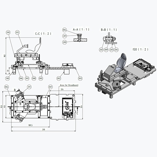 Mit einer Grundfläche von 320 × 147 × 181 mm (L × B × H) benötigt das Mockup nur wenig Platz auf dem Schreibtisch und kann selbst in kleineren Arbeitsumgebungen aufgebaut werden.